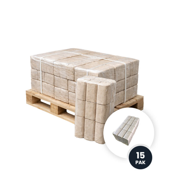 - RUF briketten: rechthoekig, lange brandduur, rustige verbranding