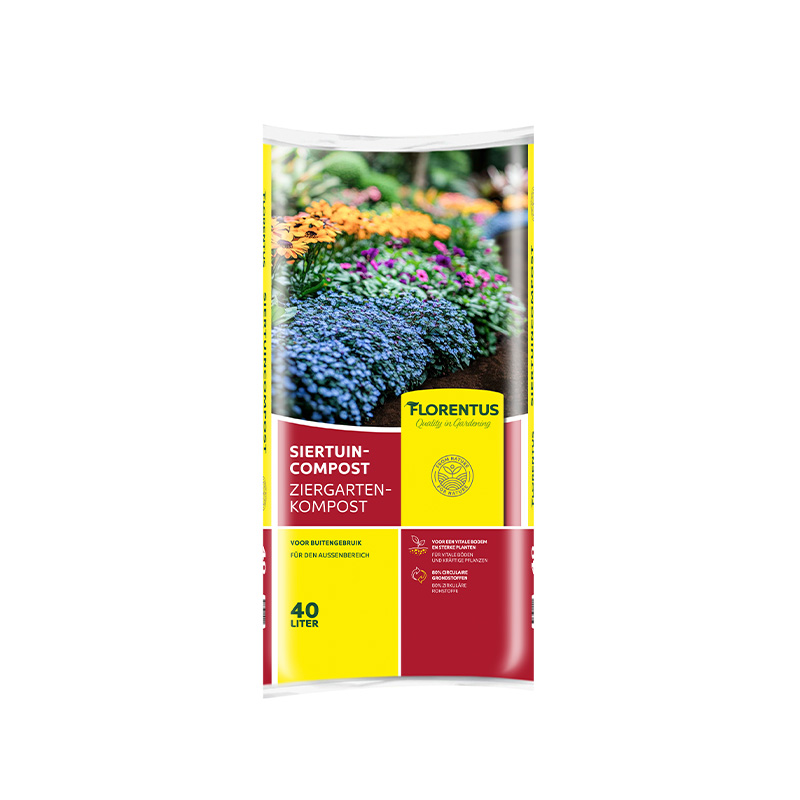 Florentus Siertuin Compost 40L is kant-en-klaar zakgoed voor onderhoud van borders en siertuinen.